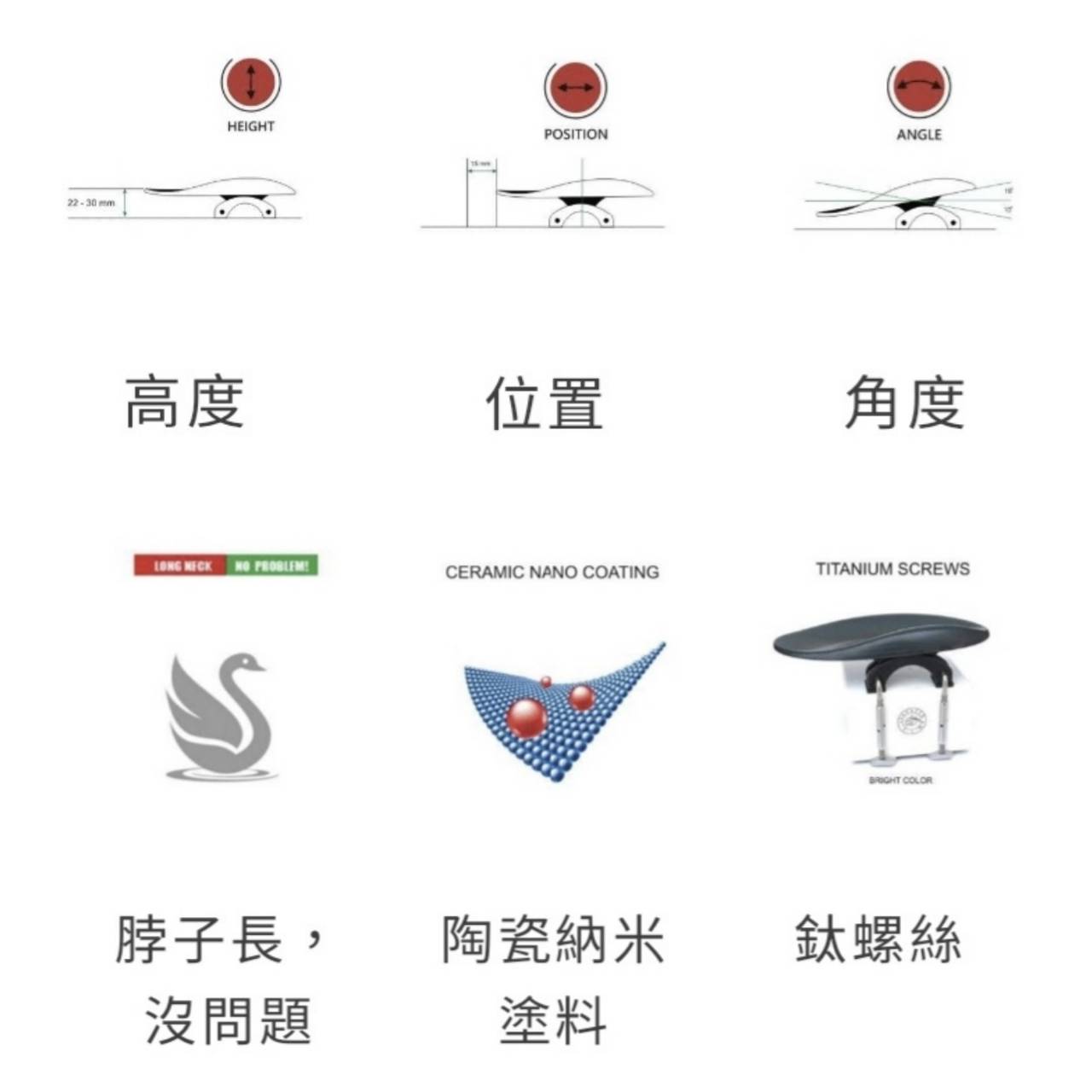 並且提供兩種腮拖盤型可選擇,可以依照個人習慣安裝於中間或側邊,高度及角度也完全可以客製化。