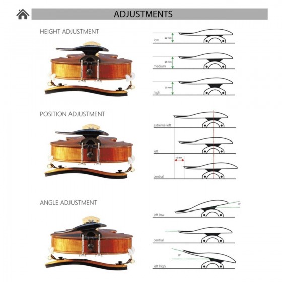 如果您容易皮膚過敏或是脖子較長者,不易找到好角度而老是藉由換肩墊來做調整,那您不妨試試此款全新3D可調式腮拖,它會讓您擁有全新感受,重新愛上拉琴時光!