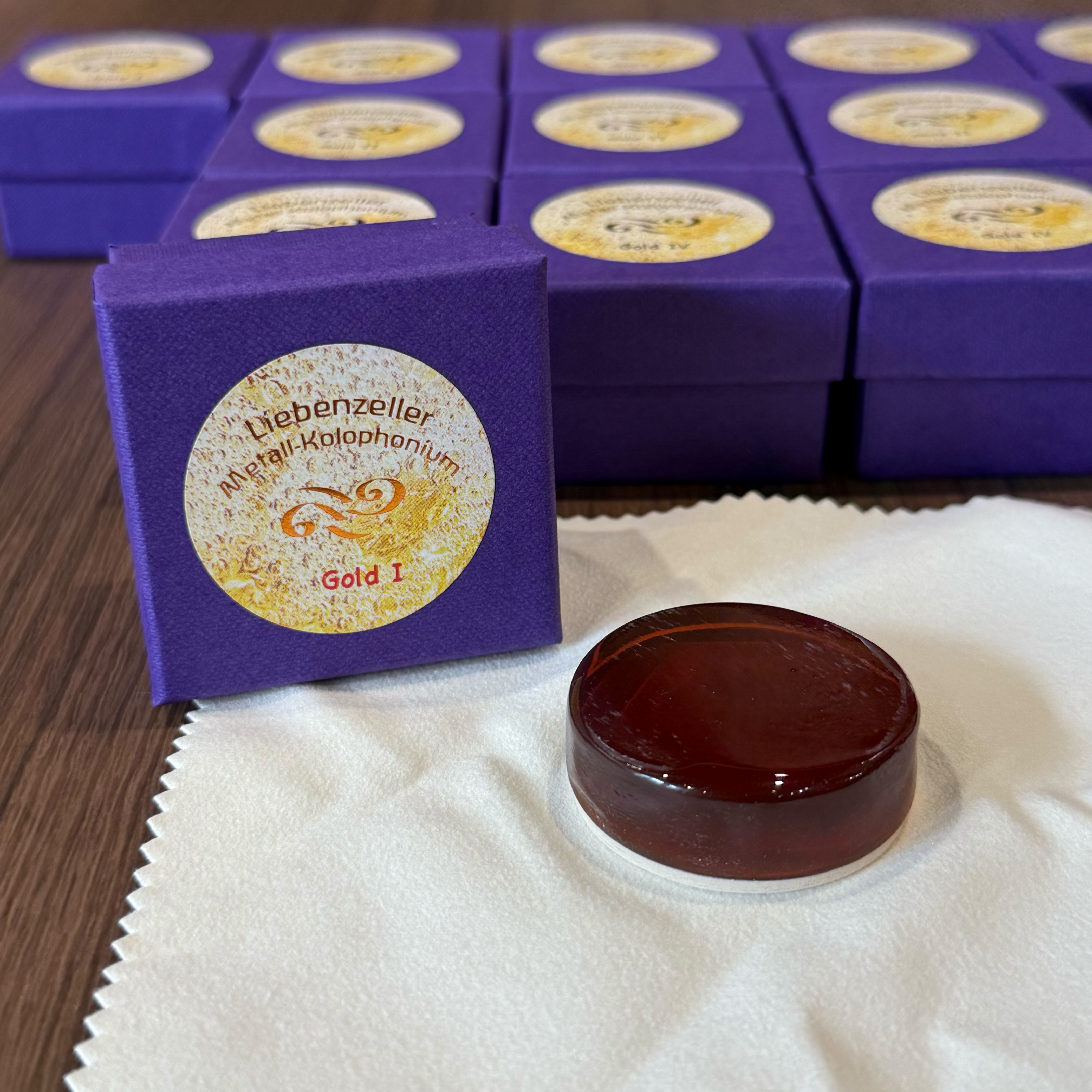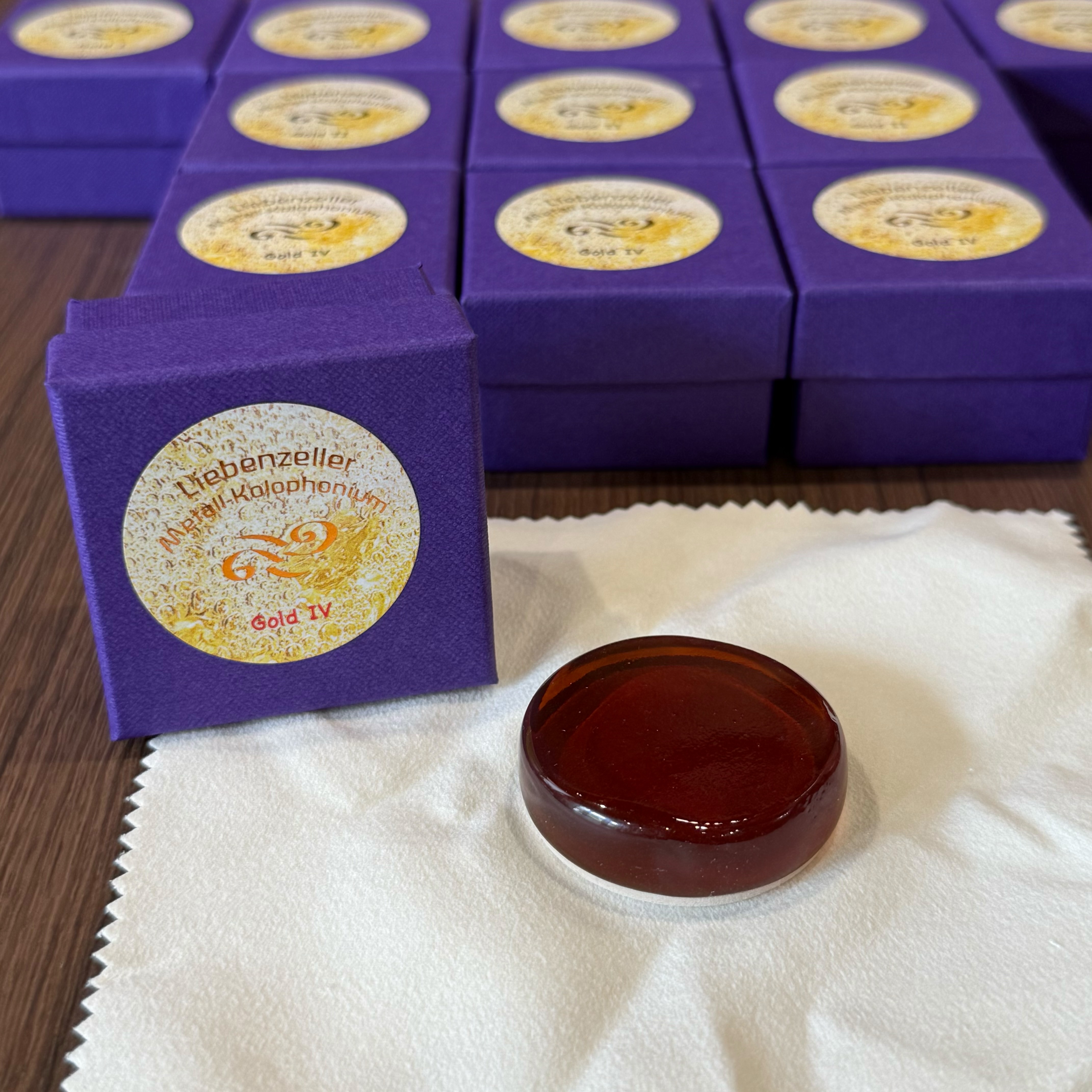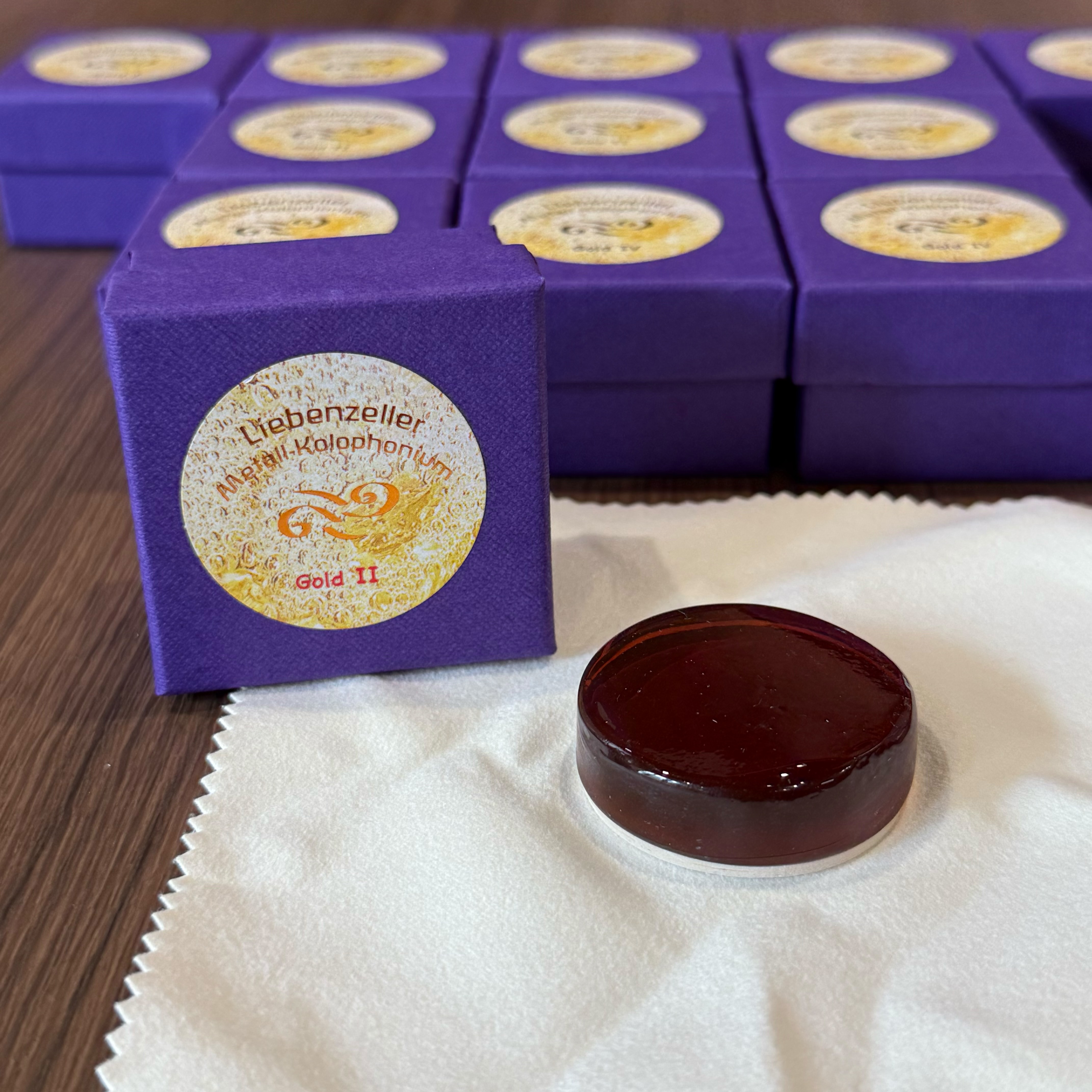 此款松香以純落葉松樹脂為基底製作,最大特色就是含有金屬成份,不同金屬的添加可以讓音色有各種不同的特質。